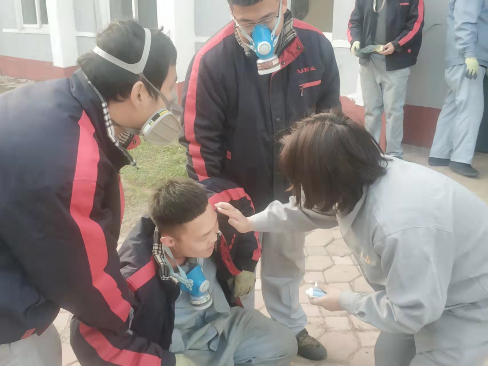 演練模擬原料車間合成一室發(fā)生火災(zāi)爆炸,車間立即啟動(dòng)應(yīng)急預(yù)案,進(jìn)行實(shí)際演練。